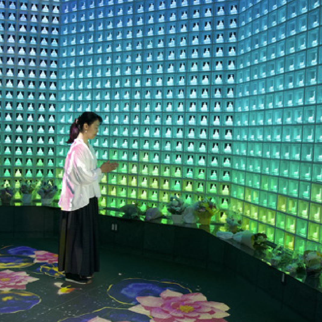 琉璃殿の建立にあたり、「お互いに合掌しあうことにより、お互いの仏心を育てる」を基本理念といたしました。言い換えれば「お互いを認め合い、自分らしく生きる」。こんな思いを同じくする方々が集う、素晴らしい人生のための新しいステイタスをもった納骨殿です。